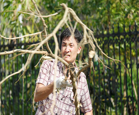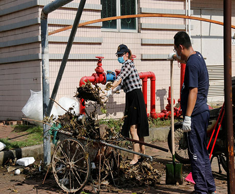 因2次臺風(fēng)連續(xù)而猛烈的破壞,園區(qū)內(nèi)隨處可見倒臥的樹木及斷枝、被吹落的屋頂鐵皮、保溫棉垃圾。為盡快恢復(fù)園區(qū)的環(huán)境,29日在中共中富總支部的倡議下,由黨員、志愿者組成的搶險小分隊,頂著毒辣的太陽及高溫天氣,大家不怕臟、不怕累、手持砍刀將倒下的大樹鋸斷搬走,用掃把、鐵鏟將園區(qū)內(nèi)吹倒的樹桿、鐵皮、玻璃等垃圾雜物一 一清理干凈。在清理現(xiàn)場,公司領(lǐng)導(dǎo)張海濱總經(jīng)理親臨現(xiàn)場參加并指導(dǎo)。在熱火朝天的現(xiàn)場,不論是辦公室人員還是車間人員,不管是男同胞還是女同胞,均不分彼此,全力而為,隔著屏幕都能感覺到大家滿滿的正能量。無情的臺風(fēng)雖然破壞了美麗的家園,卻也讓我們再次看到了一個個愿意奉獻(xiàn)、不怕辛苦的中富人。