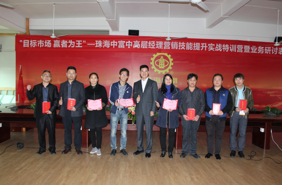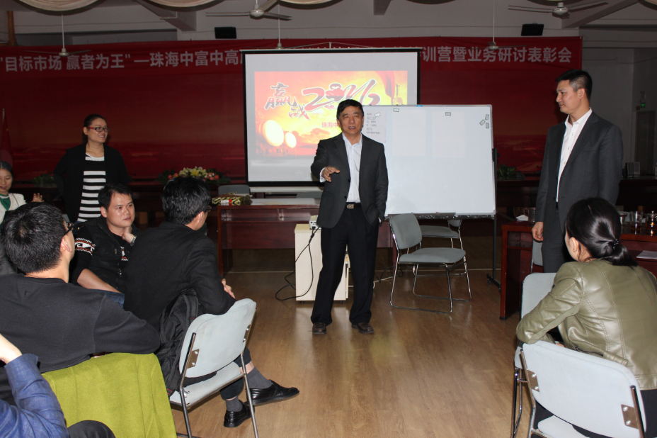 2015年12月27日,公司利用開設“珠海中富‘目標市場、贏者為王’中高層營銷技能提升特訓營”的機會,再次在支持中心舉辦了“2016年業(yè)務研討表彰會”,會議由人力資源部主持,董事長兼總經(jīng)理宋建明先生、總經(jīng)理特別助理吳逢彬先生、各職能部門總監(jiān)、各區(qū)總監(jiān)、各工廠廠長、各區(qū)財務總監(jiān)、優(yōu)秀員工代表、有獎征文獲獎者代表共70人參加了會議;本次會議旨在明確公司2016年業(yè)務目標、分享實現(xiàn)目標的推進方案、落實廠長對工廠業(yè)務的責任、樹標桿立榜樣、共商未來關鍵改善行動措施。會議主要有如下內容: